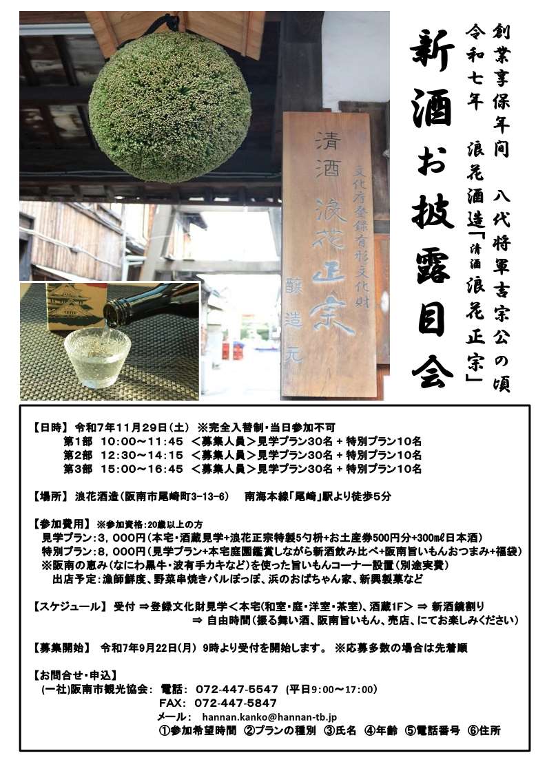 【11月29日(土)】新酒お披露目会(浪花酒造)