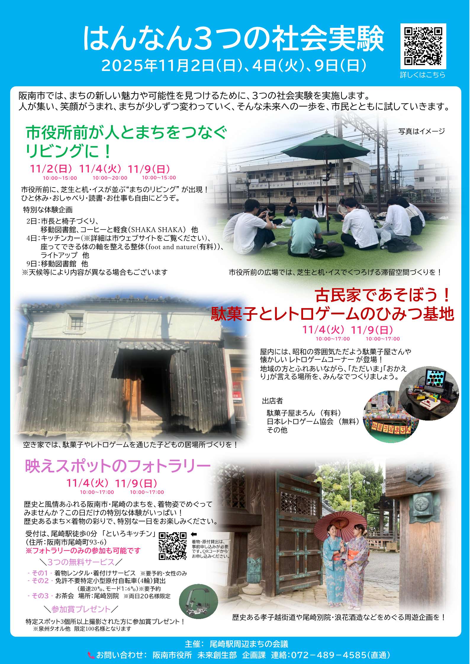 【11月2日(日)・4日(火)・9日(日)】はんなん3つの社会実験(尾崎駅周辺社会実験WEEK)
